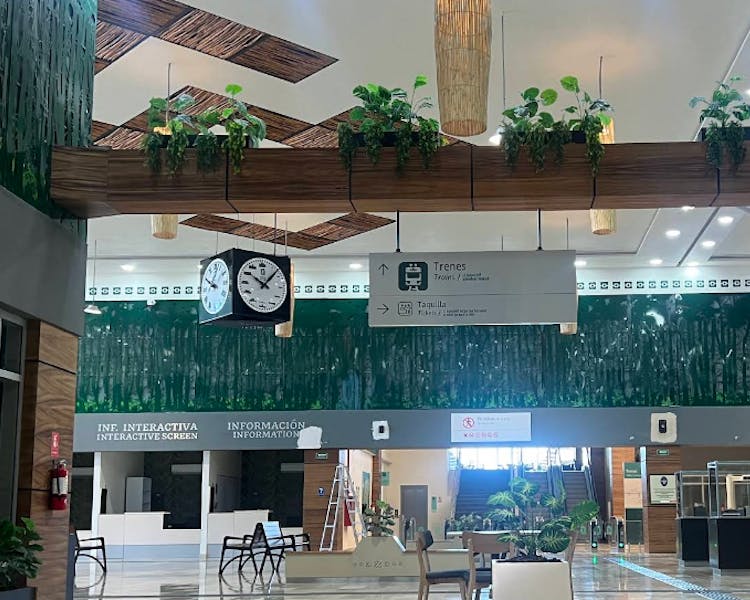 Al descender en este punto, el visitante podrá recorrer el Mercado del Bienestar Maya, el cual reúne a bordadoras, artesanos, talladores, cañeros, productores de miel y muchas otras personas que ponen a la venta sus productos.