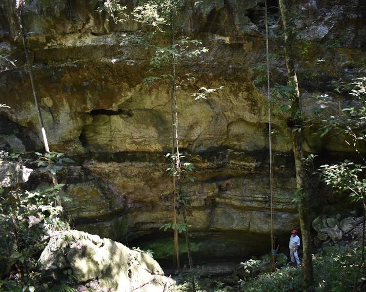 Después de un intrépido recorrido por los senderos de la Reserva, llegarás a uno de los parajes más secretos de Calakmul, para conocer el hábitat natural de los monos saraguatos y de los monos araña.